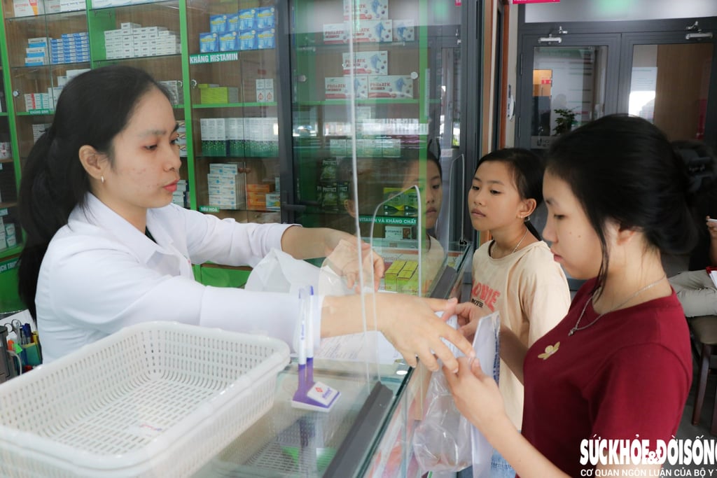 Sau khi được đưa đi xét nghiệm máu, chụp CT cắt lớp, siêu âm vùng bụng... hai chị em Châu và Tuyền còn được phát thuốc miễn phí. Ảnh: Duy Ngọc.